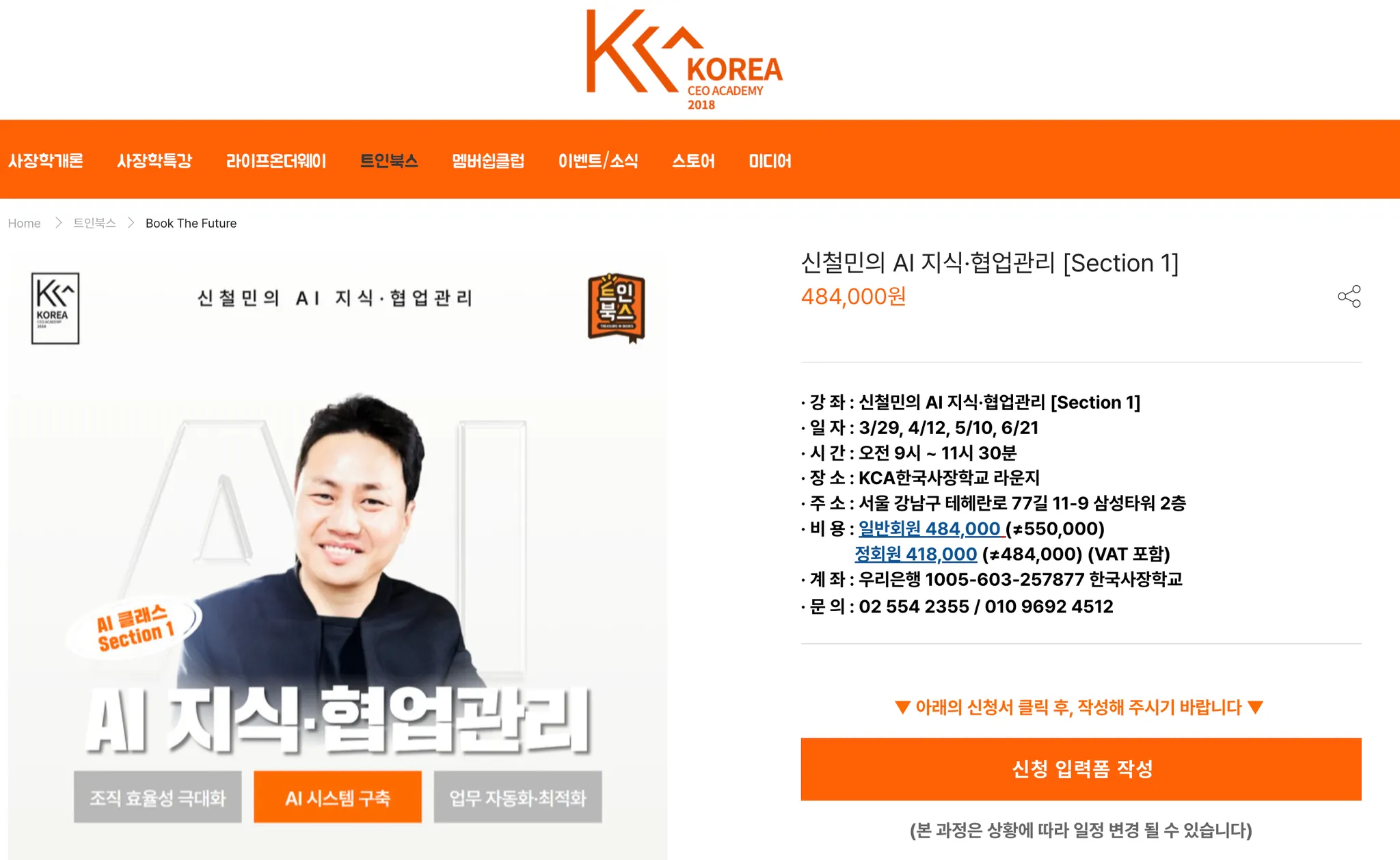 신철민의 AI 지식·협업관리 [Section 1] : KCA 한국사장학교