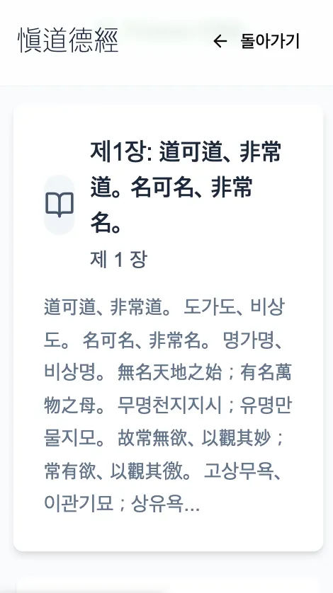 『愼道德經』 앱은 노자의 도덕경을 바탕으로, 고대의 지혜를 오늘의 삶 속에서 다시 살아내기 위해 만들어졌습니다.