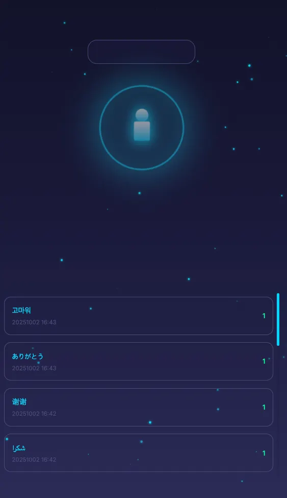 “감사합니다” 버튼 하나로 우주와 공명하는 특별한 체험을 해보세요.
